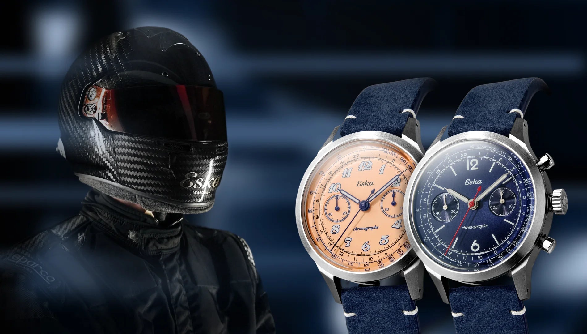 Les chronographes automatiques Racing Azur et Racing Sunset,nouvelles concurrentes de la collection Eska Light, accompagnent la recherche de performance.