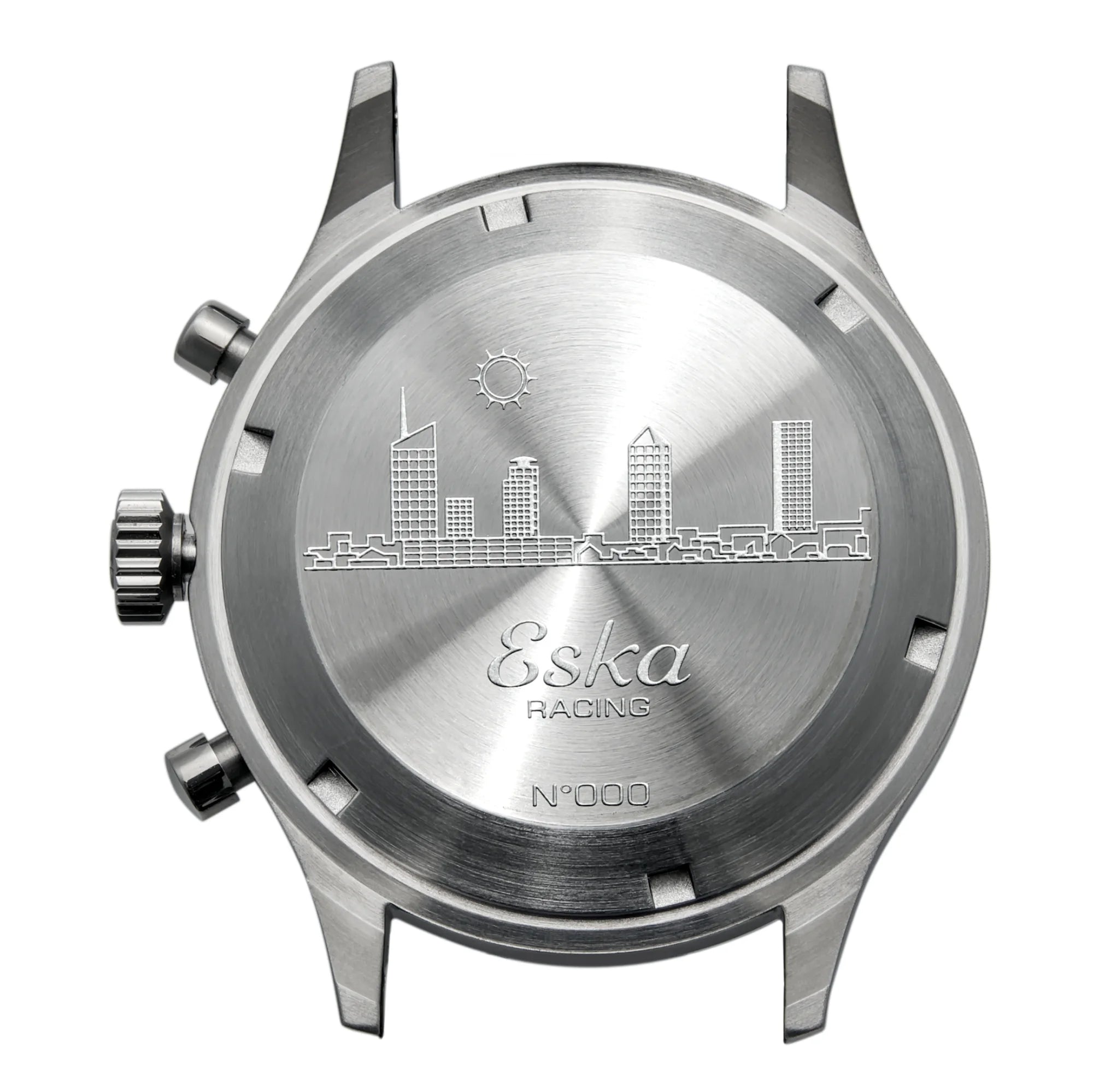 Avec un diamètre assumé de 41mm pour 12,8 mm d’épaisseur hors verre (14,9 mm avec le verre), ce nouveau chronographe Racing ouvre une nouvelle saison de garde-temps Eska, plus « Light », plus sportifs et moins « gourmands », résolument conçus et développés pour le plus grand plaisir de tous.